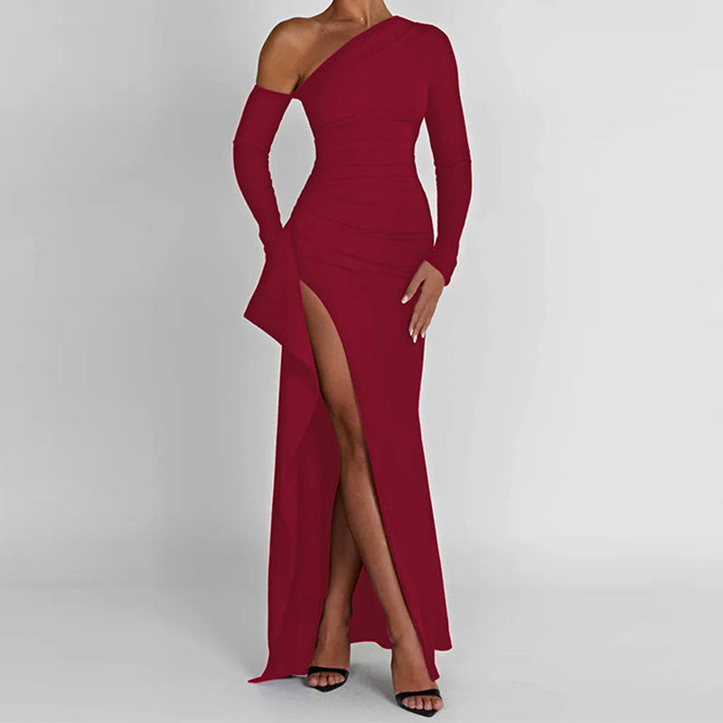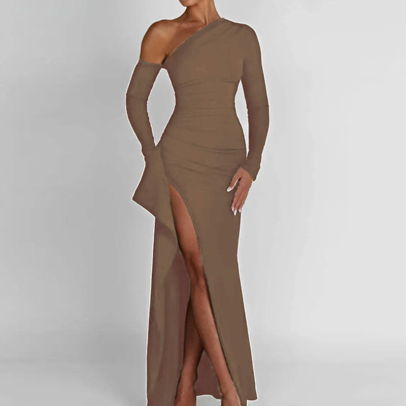 Autumn And Winter New Women's Clothing Sexy Waist Trimming Split Sloping Shoulder Dress
