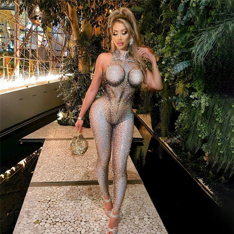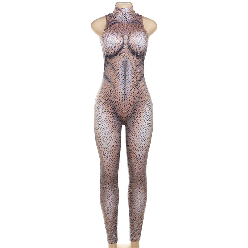 European And American Style Fashion Personality Street Digital Printed Sexy Sleeveless Tight Jumpsuit