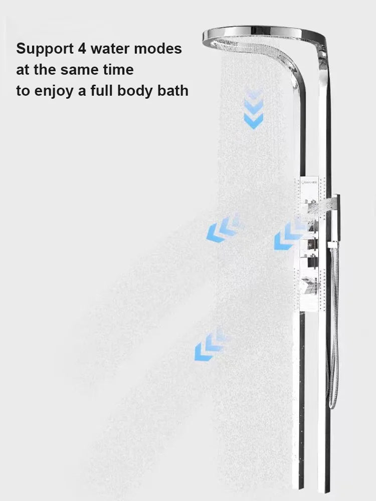 SPECIFICATIONSBrand Name: NoEnName_NullType: OtherOrigin: Mainland ChinaWarranty: 3 yearsMaterial: Brass, Stainless SteelAfter-sale Service: Online technical supportProject Solution Capability: graphic design, total solution for projectsApplication: BathroomDesign Style: ModernPlace of Origin: ChinaModel Number: shower panelSurface Finishing: BlackSurface Treatment: BlackExposed B & S Faucet Feature: Without Slide BarExposed Shower Faucet Feature: Without Slide BarNumber of Handles: Four HandlesStyle: ContemporaryShower Head Shape: RectangleFeature: Electric FaucetsValve Core Material: CeramicSpray Pattern: Rain, Jet, MassageColor: Chrome,black,white,greyOEM and ODM: AccepttUsage: Apartmen Villa Hotel BathroomCartridge Lifetime: 500000 timesShower Head Feature: Rainfall Shower Head WaterfallFunction: 4 FunctionMulti functions hot and cold shower screenDetails ImagesRecommend ProductsCompany ProfileCertificationsProduct packagingQ1: Are you trading company or factory?A: Our company is a factory. We welcome OEM and ODM orders, whether selecting a current product from the catalog or seeking engineering assistance for project's application, Benlin will provide you worry free purchasing experiences and striver to be your long-term partner. We provide customers with competitive prices, high-quality products and the best service.Q2: Can I visit your factory? Can you arrange transportation for me?A: Yes, it is our great honor to invite you to visit our factory. We can arrange our colleague to pick you up.Q3: Is your factory able to design our own package and help us in market planning?A:We are willing to help our customers to design their package box with their own logo according to their requirement.Q4: Can we get sample to check quality?A: Sure, you can get our samples to check the quality firstly.Q5. How about the delivery time?A: Depend on product and quantity customers need.if need small quantity,we can ship out the goods within 3-5 days.If buy in bulk, it about 30-45days after the payment..Q6: Does your factory have design and development capabilities? We need to customize.The staffs in our R&D department are well experienced in the faucet industry, with more than 5 to 10 years experience. We can make customized products especially for you;please kindly contact us for more details.SPECIFICATIONSBrand Name: NoEnName_NullType: OtherOrigin: Mainland ChinaWarranty: 3 yearsMaterial: Brass, Stainless SteelAfter-sale Service: Online technical supportProject Solution Capability: graphic design, total solution for projectsApplication: BathroomDesign Style: ModernPlace of Origin: ChinaModel Number: showerSPECIFICATIONSBrand Name: NoEnName_NullType: OtherOrigin: Mainland ChinaWarranty: 3 yearsMaterial: Brass, Stainless SteelAfter-sale Service: Online technical supportProject Solution Capability: graphic design, total solution for projectsApplication: BathroomDesign Style: ModernPlace of Origin: ChinaModel Number: shower