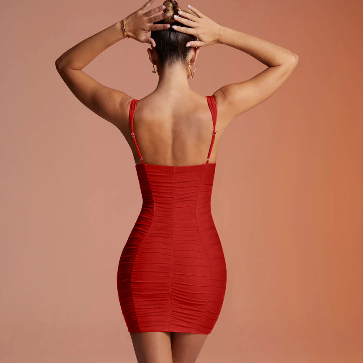 Lace-up Crimp Plus Size Temperament V-neck Hip Dress