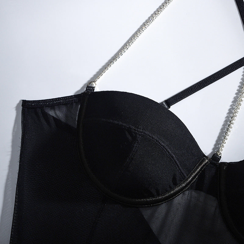Metal Chain Suspender Top Sexy Halter Bodysuit