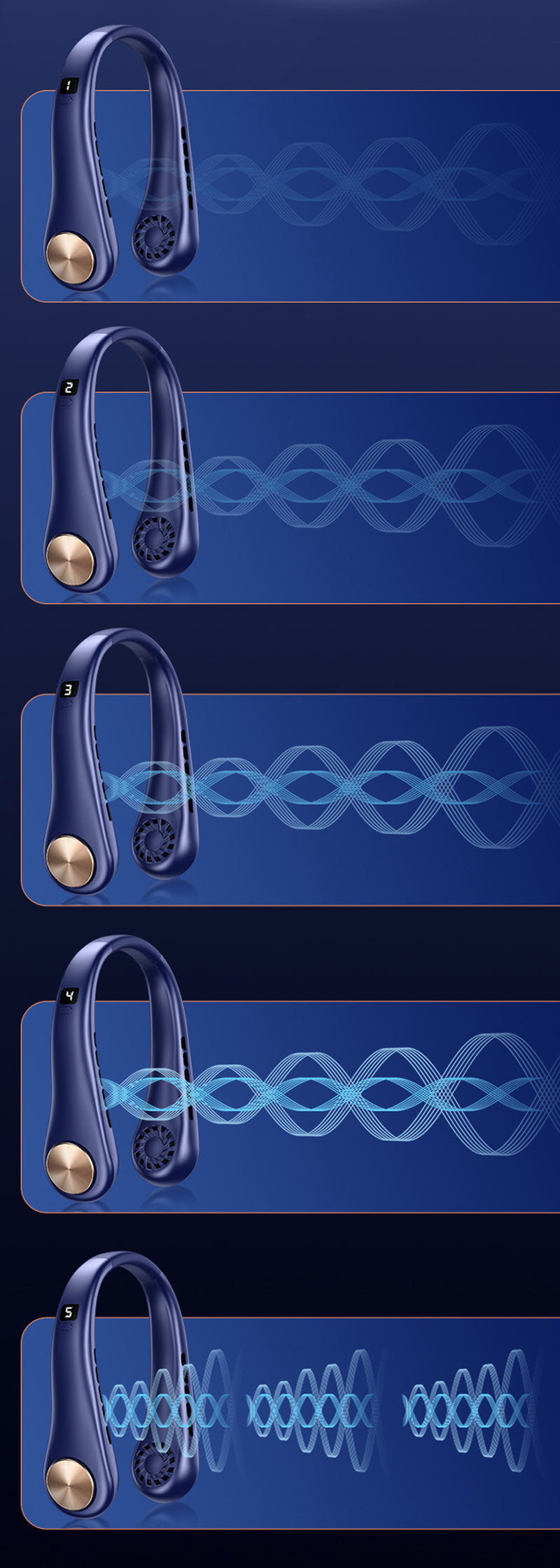 1. The unique design of the portable neck fan is inspired by earphones. It only needs to be hung around the neck to free your hands, and it looks so cool & fancy.
