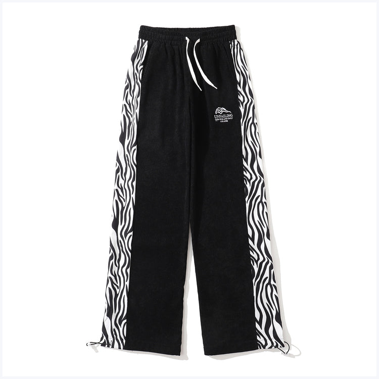 Paneled Zebra Pattern Straight-leg Slacks