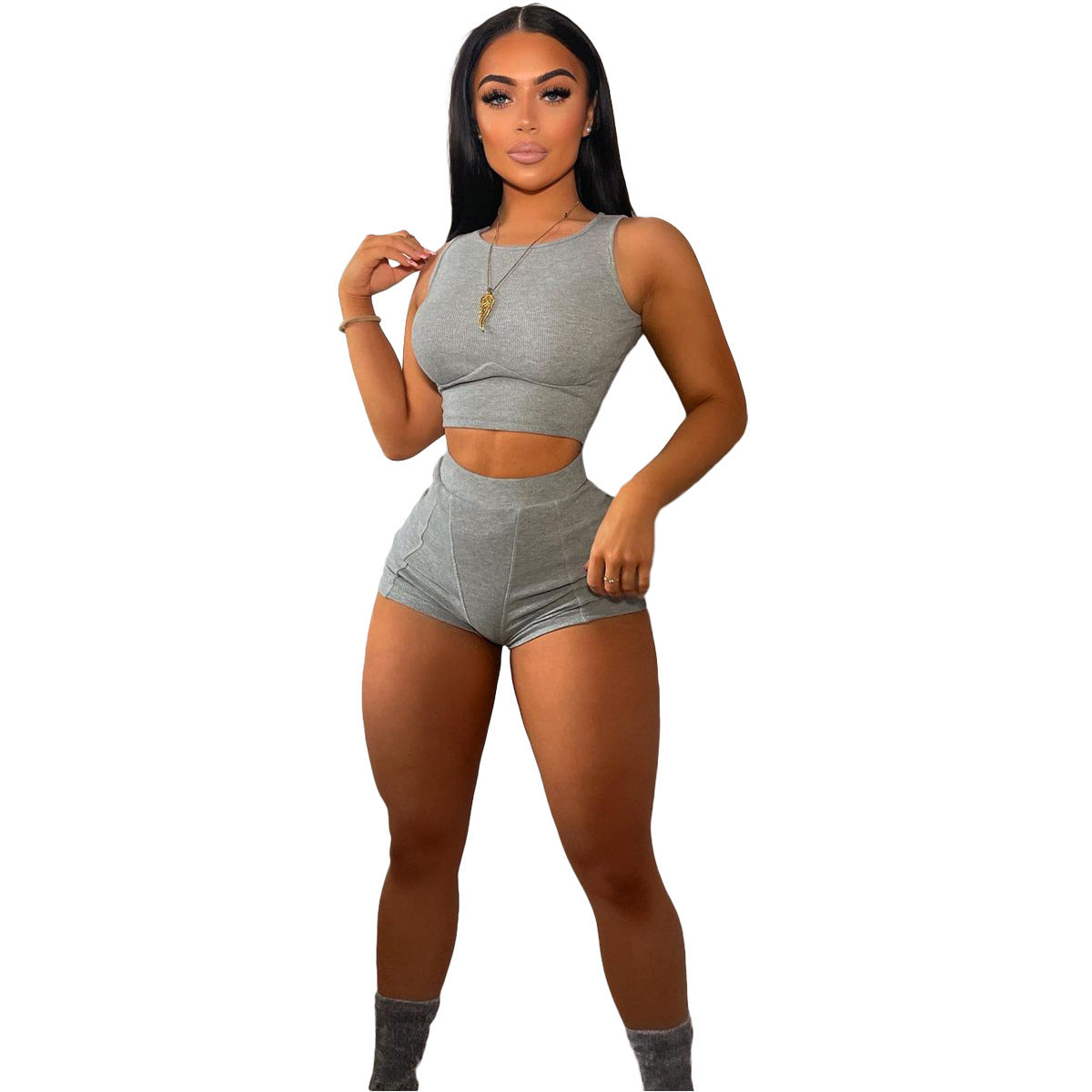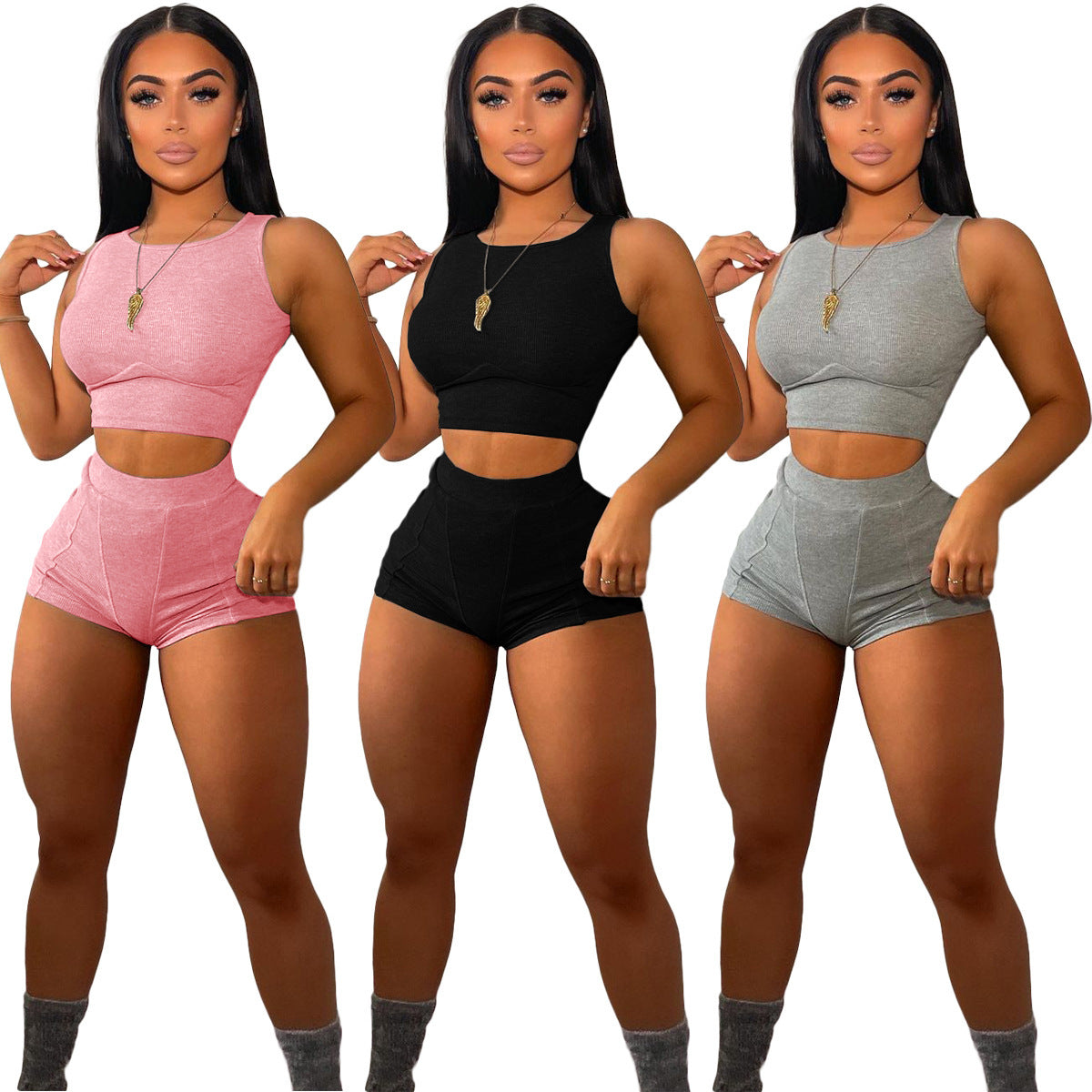 Pure Color Pit Strip Casual Fashion Sports Suit