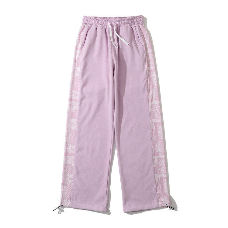Summer Thin Stitching Cashew Flower National Tide Straight Casual Pants For Men And Women Loose Tide Brand Wild Pants
