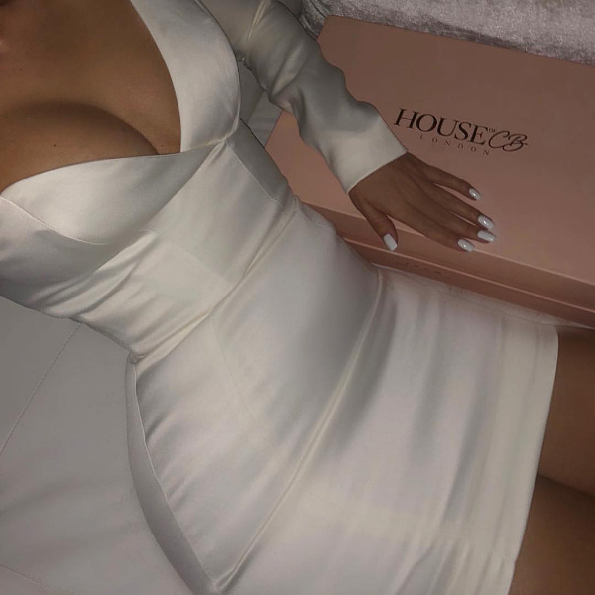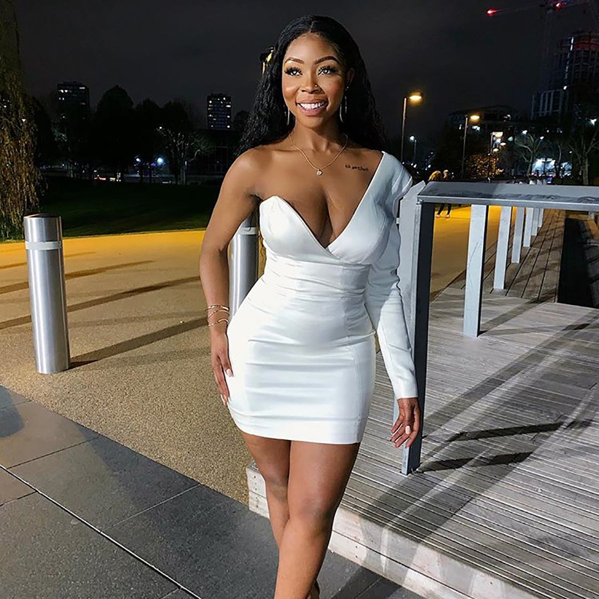 V-neck wrapped chest slanted shoulder dress