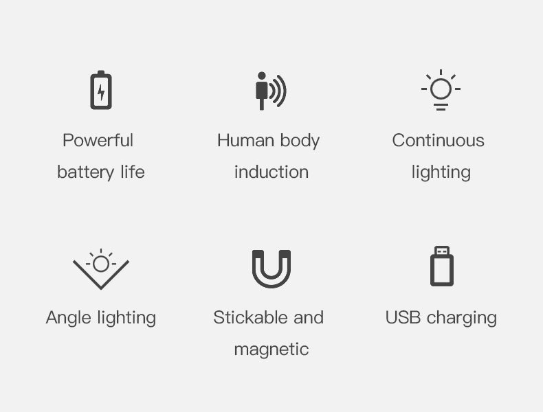 Overview:1. Exercise is activated at night and automatically extinguished after leaving2. ON-OFF-AUTO three-position switch3. ON normally on mode, OFF off mode, AUTO automatic sensing mode,4. Sensing distance: 3-5 meters, sensing delay time: 20 seconds, sensing angle: 120 degrees5.1200 mA large capacity batteryImportant Information:Material: ABSPackage size:95*46*95mmProduct Information:Specification: black/yellow light black/white lightSize: 92*42*92mmStyle: AmericanPacking List:Induction lamp * 1USB cable * 1Double-sided adhesive iron sheet * 1Overview:1. Exercise is activated at night and automatically extinguished after leaving2. ON-OFF-AUTO three-position switch3. ON normally on mode, OFF off mode, AUTO automatic sensing mode,4. Sensing distance: 3-5 meters, sensing delay time: 20 seconds, sensing angle: 120 degrees5.1200 mA large capacity batteryImportanOverview:1. Exercise is activated at night and automatically extinguished after leaving2. ON-OFF-AUTO three-position switch3. ON normally on mode, OFF off mode, AUTO automatic sensing mode,4. Sensing distance: 3-5 meters, sensing delay time: 20 seconds, sensing angle: 120 degrees5.1200 mA large capacity batteryImportan