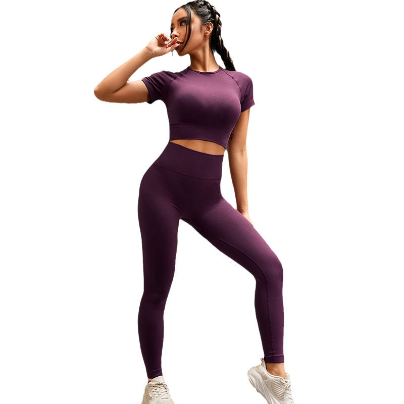 Women's Fashion High Waist Hip Lift Skinny Slimming Sports Fitness Two-piece Set