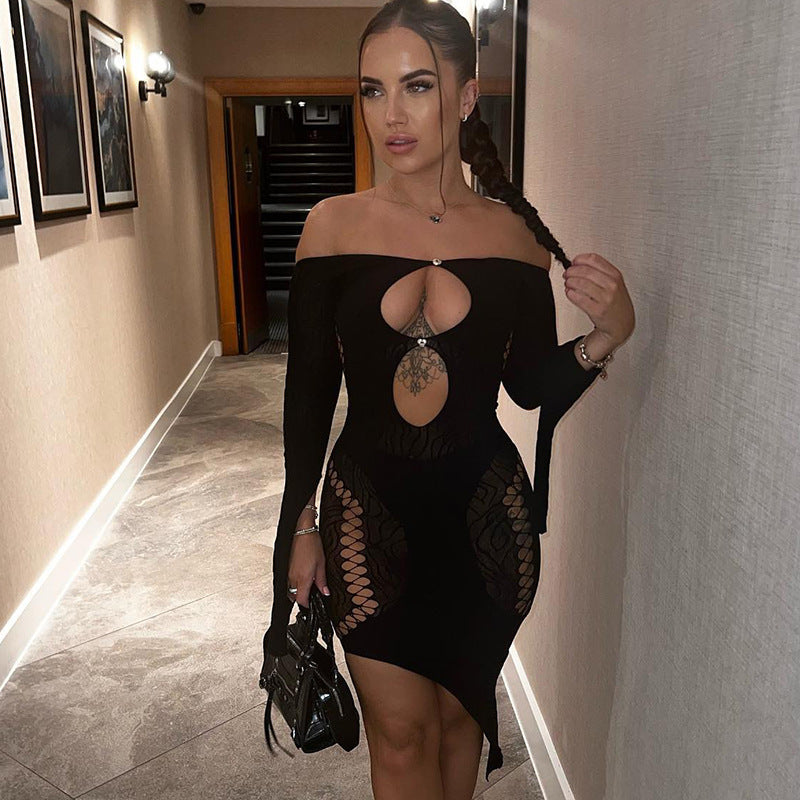Women's Off-the-shoulder Long-sleeved See-through Dress