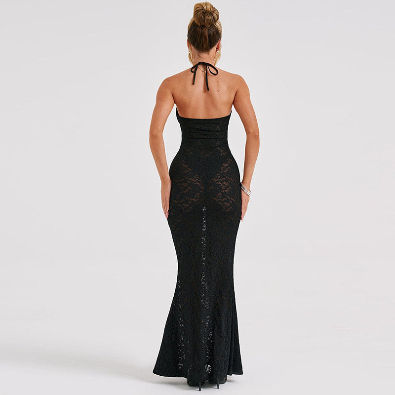 Women's V-neck Chest-wrapped Halter Stitching Lace Dress
