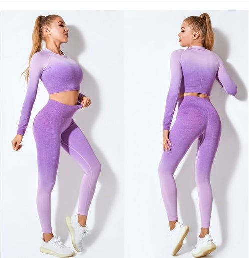 Yoga Wear Long Sleeve Suit Women Seamless Gradient Fitness Wear